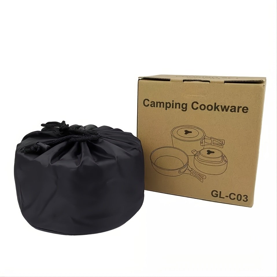 3pcs/set Lightweight Outdoor Cooking Utensils Kit Portable Camping Pot Pan Kettle Soup Wok Pot Cookware Set